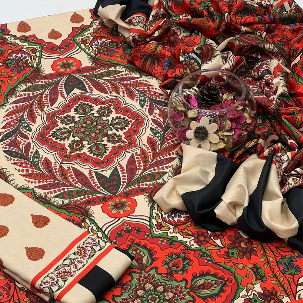Soft Slub Karandi Digital Print Shirt & Trouser Along With Soft Karandi Khaddar Digital Print Shawl 3 Pcs Dress. Send it to your Mother, Sister, Wife, or anyone across Pakistan.